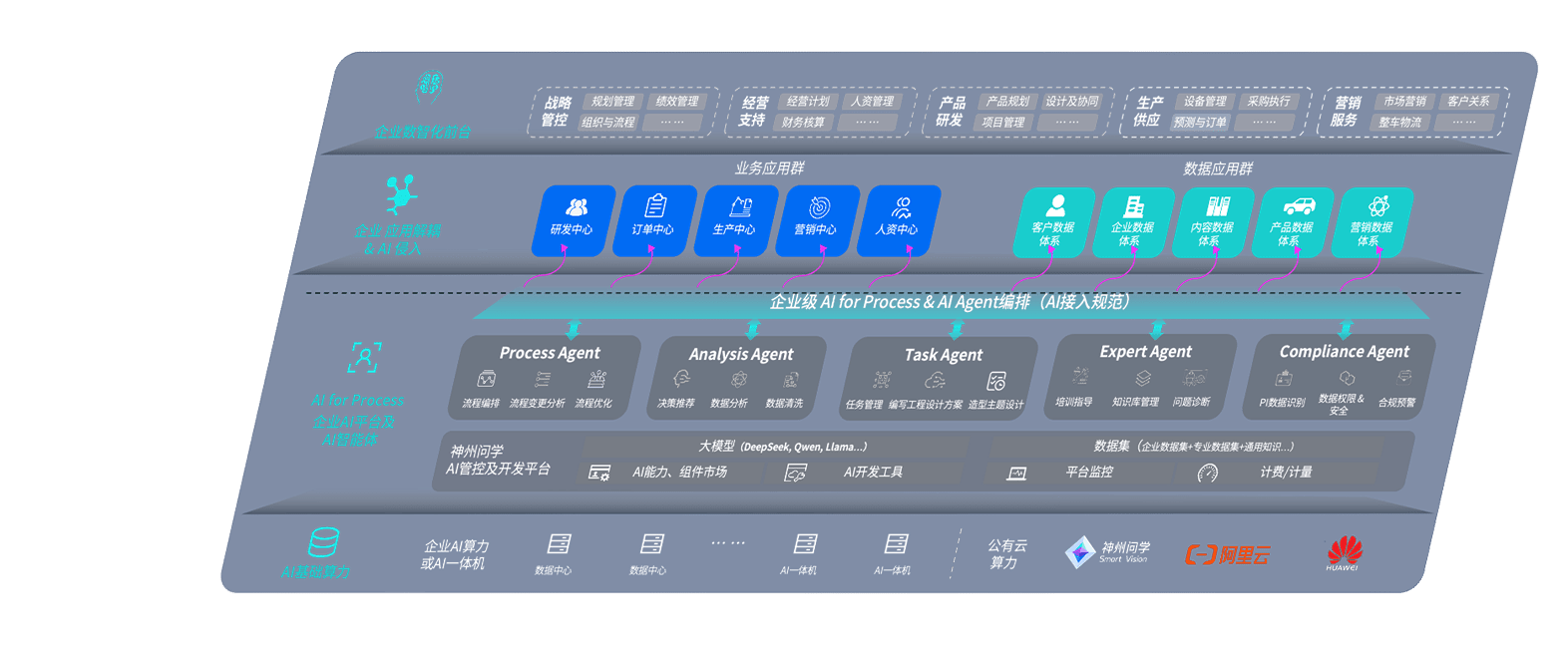 云海游戏问学智车解决方案是一套基于AI技术的汽车行业智能化系统,,,覆盖从底层算力到顶层AI应用的全栈方案。。。。方案由算力层、、模型层和应用层组成:算力层,,方案支持多种一体机配置,,,,具备云端灵活部署、、多云适配以及动态优化计算资源的能力;模型层,,云海游戏问学平台版提供了企业级AI应用一站式构建与管理平台,,,支持基于后训练强化技术的汽车企业专属模型的训练、、、评测和运营;应用层,,,,云海游戏问学DeepSeek版提供包括超级员工、、智能招采、、、、智能营销、、、、智能客服、、AI for BI等一系列解决方案,,,,可助力汽车行业实现数字化转型,,让管理更智能、、、响应更敏捷。。